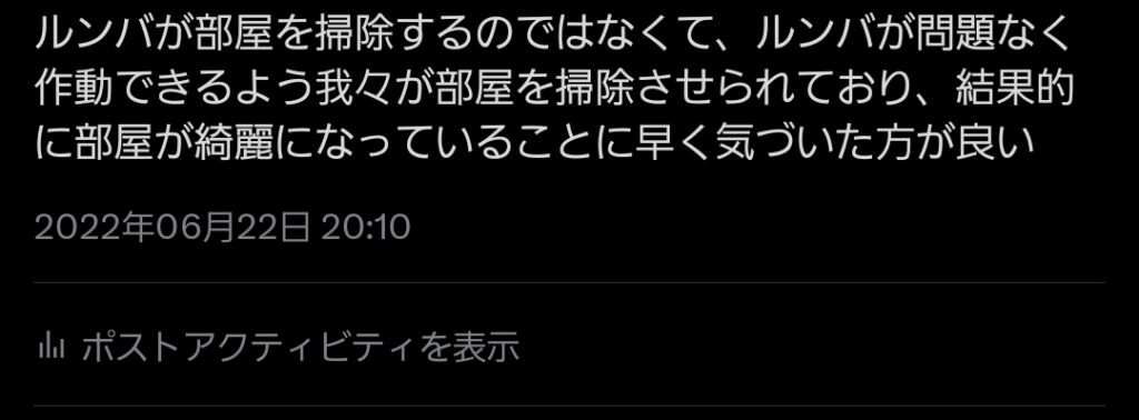 たとえ一人暮らしであってもロボット掃除機を買うべし、床が汚い人間こそロボット掃除機を買うべし。そんな結論でこの記事を締めたいと思う。