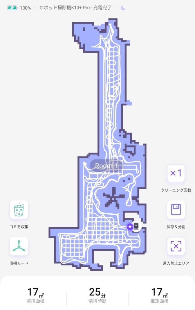 一度に掃除できる範囲が少ないので時間がかかるのは仕方ないが、廊下を入れても9畳の空間に25分もかかるのは正直いただけない。