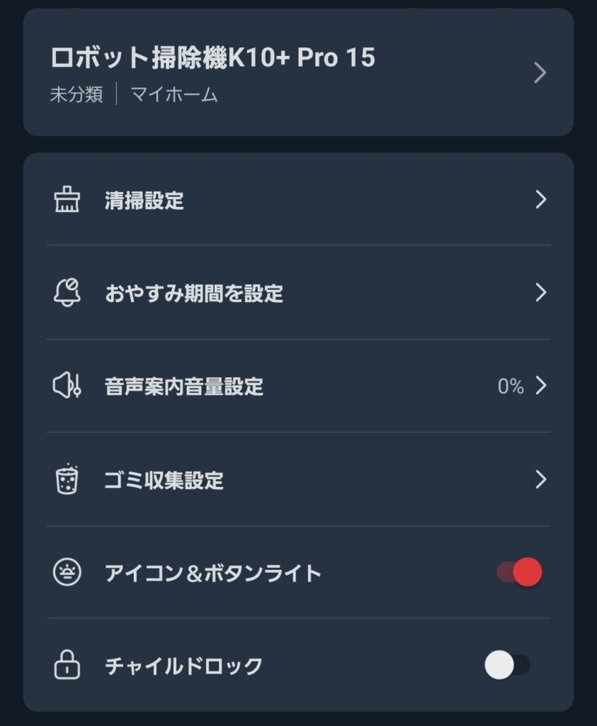 ここがもう少し拡充してくればより便利になるとは思うが、ロボット掃除機に求めているのはルーティンワークなので音声操作をすることは少なく、現状のままでも特に不満はない。